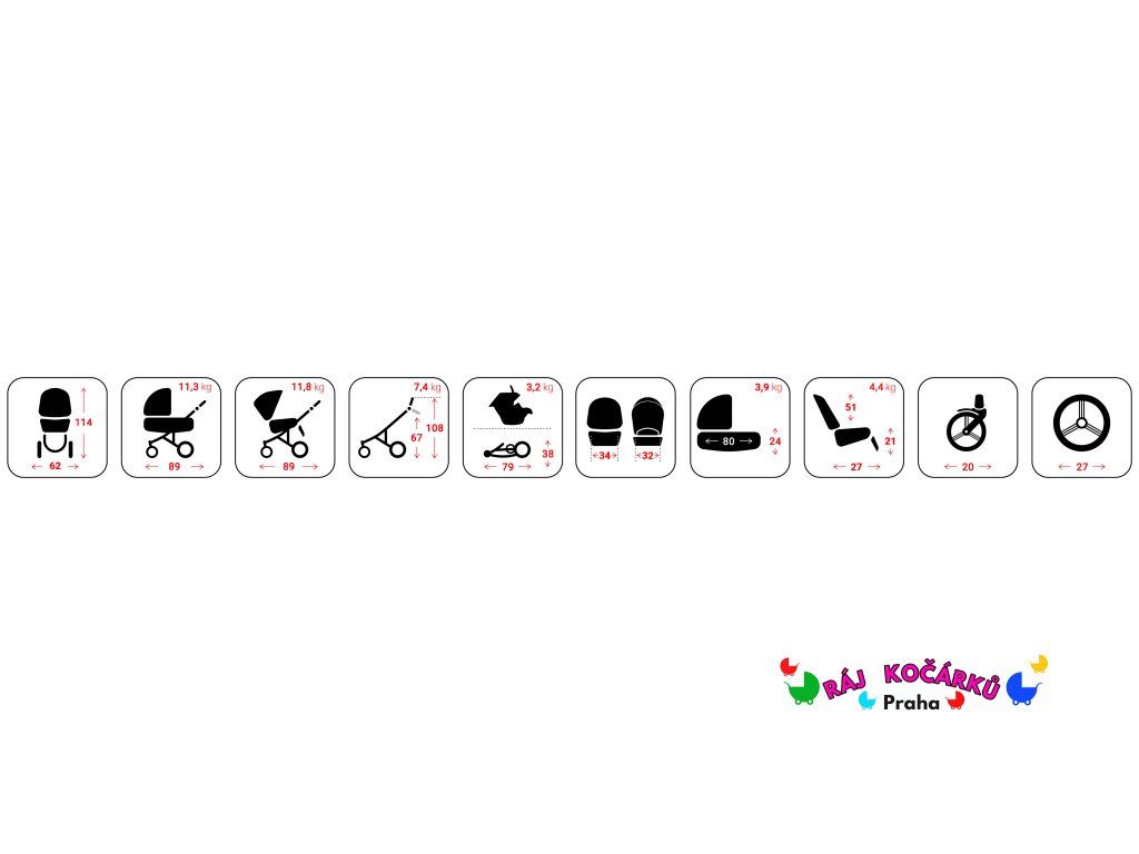 Šířka sedadla kočárku: 34 cm (vnitřní rozměry)