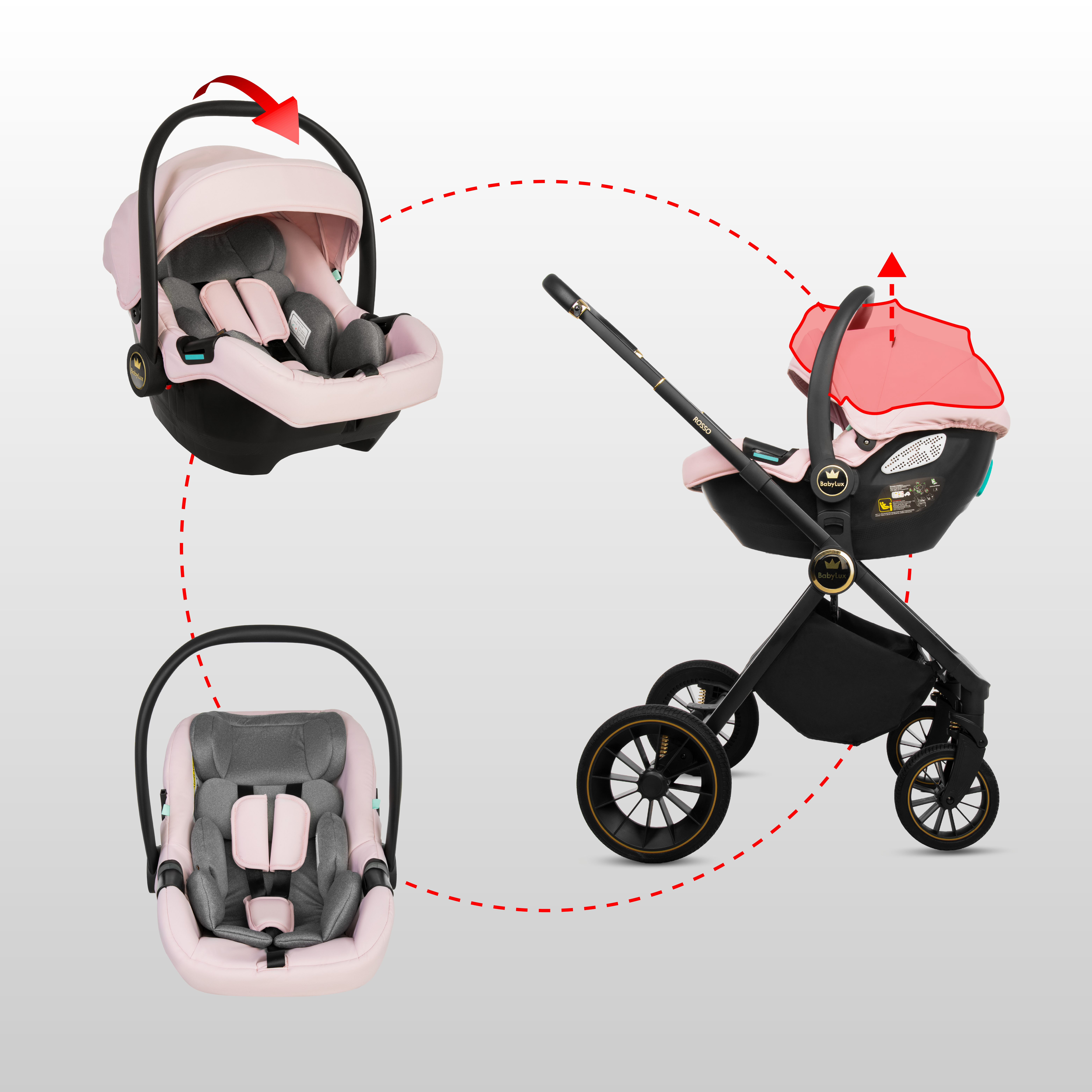 Kočárek 2v1 Baby Lux Rosso