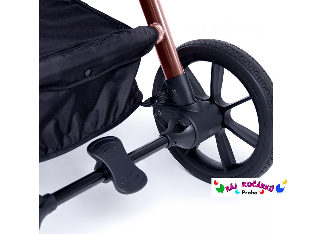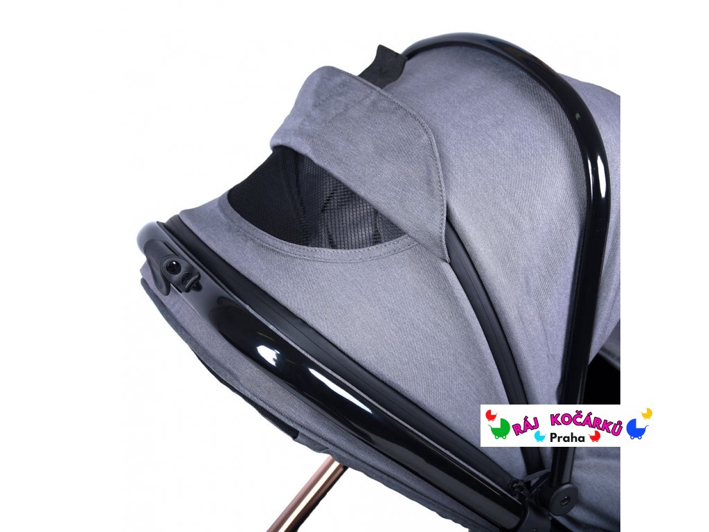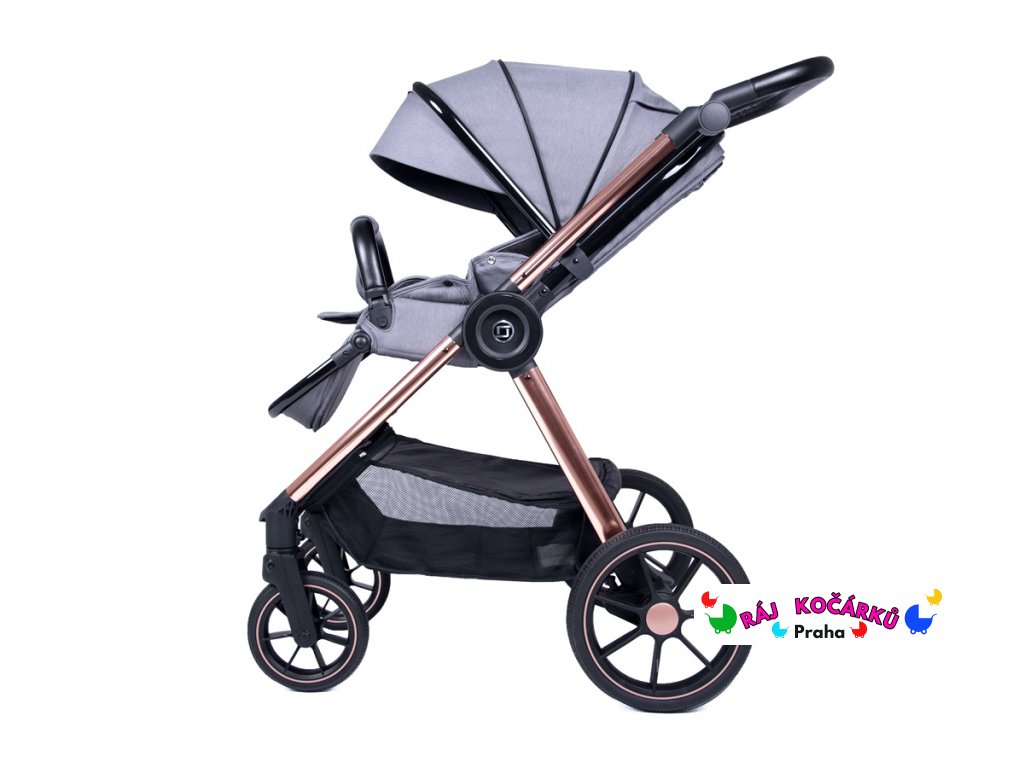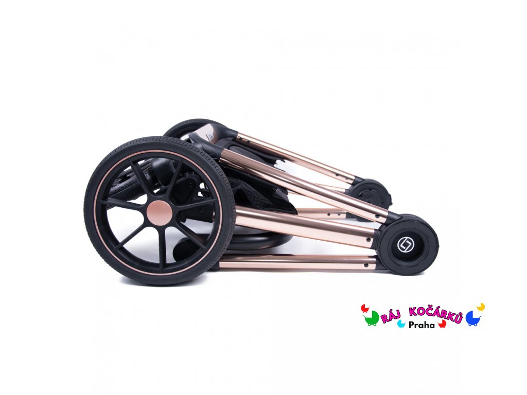 Kočárek se skládá z rámu, který je otočen po směru i proti směru jízdy