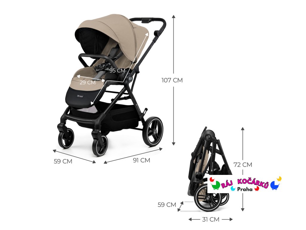 - rozměry rozloženého kočárku: 91 D x 59 Š x 107 V
