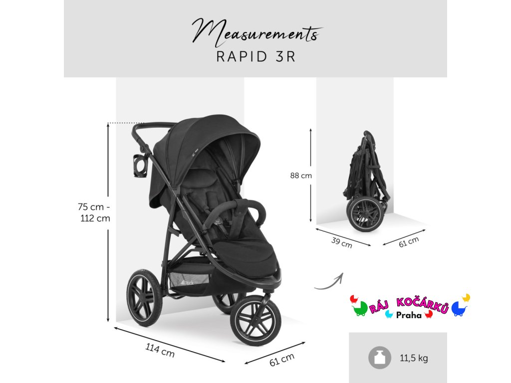 Rapid 3R je vhodný do cca. 4 let a do zátěže 25kg. Pro přepravu se rychle složí do kompaktního rozměru. Odjišťovací poutko usnadní nošení.