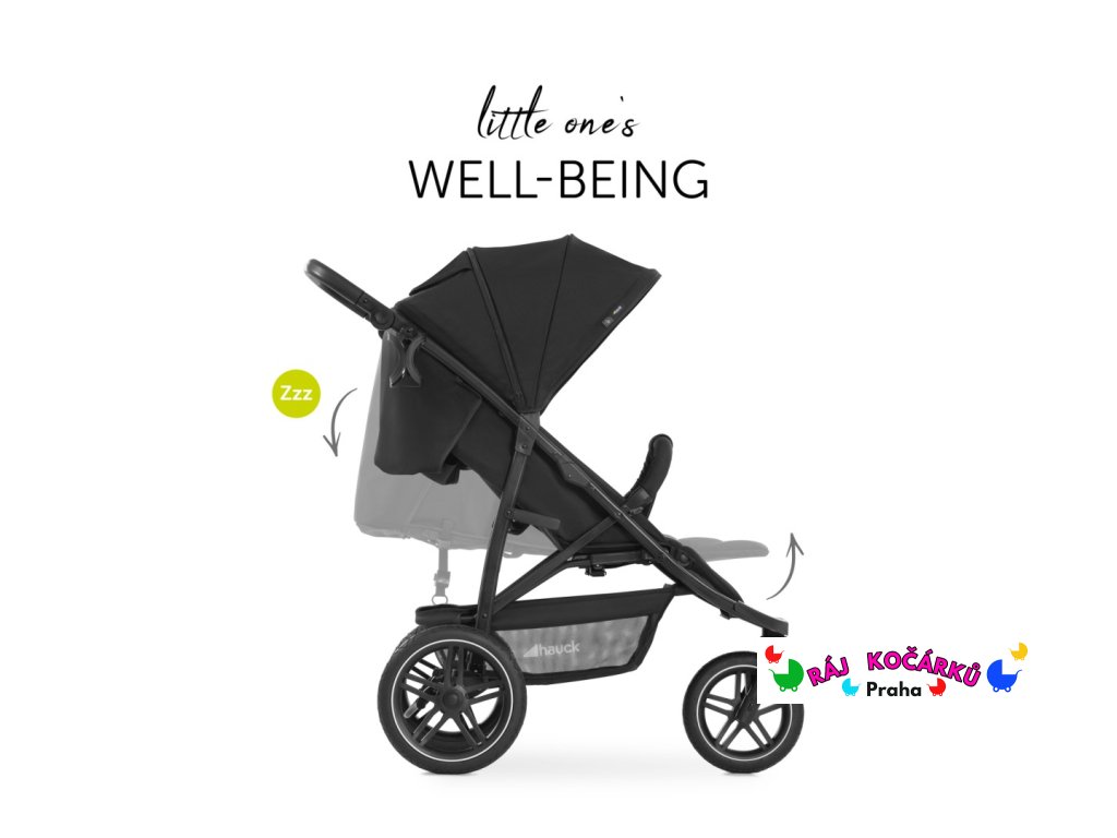 Pro pohodlnější odpočinek můžete nastavit opěrku zad a podnožku do polohy vleže. Dětské potřeby se během jízdy snadno uskladní ve velkém koši.