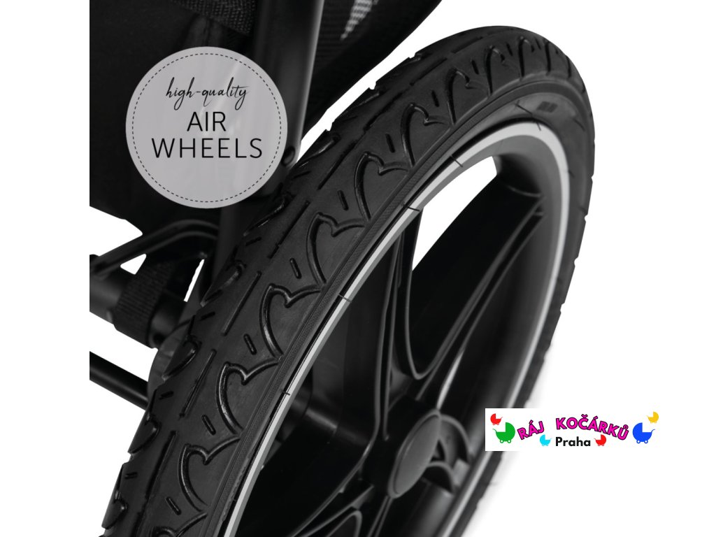 Robustní terénní kočárek // Vyrazte ven s tímto terénním fešákem za rodinným dobrodružstvím. Extra velká nafukovací kola zaručí jízdu s minimem otřesů. Kočárek díky otočnému kolu mistrovsky zdolá úzké zatáčky.