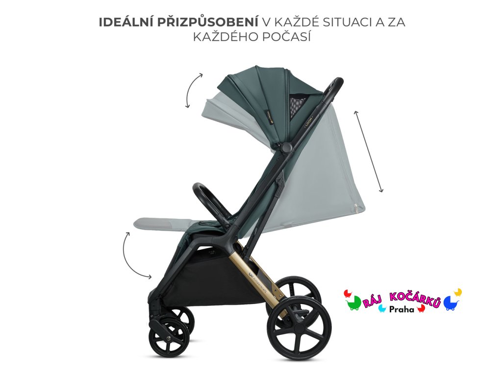 Lehká konstrukce a automatické skládání usnadňují uskladnění a přepravu. Kompaktní rozměry po složení umožňují pohodlně uložit kočárek do kufru auta nebo skříně.